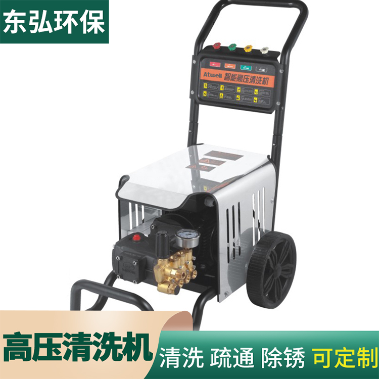 高壓清洗機,是通過動力裝置使高壓柱塞泵產生高壓水來沖洗物體表面的機器。它能將污垢剝離,沖走,達到清洗物體表面的目的。因為是使用高壓水柱清理污垢,所以高壓清洗也是世界公認科學、經濟、環保的清潔方式之一。 高壓洗衣機是一種高壓水射流清洗設備,它加水加壓至足夠的壓力,并使用高壓水清洗污垢
